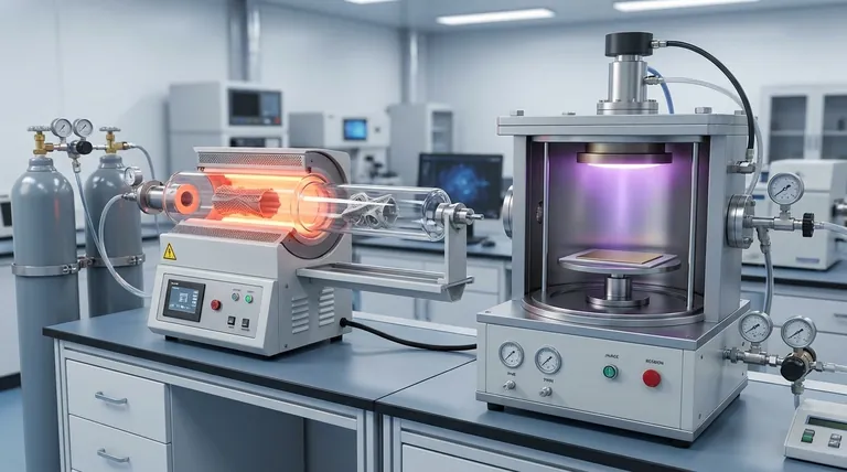 هل تواجه صعوبة في الاختيار بين الترسيب الكيميائي للبخار (CVD) والترسيب الفيزيائي للبخار (PVD) لاحتياجات مختبرك؟ في KINTEK، نحن متخصصون في حلول الأفران المتقدمة عالية الحرارة، بما في ذلك أنظمة الترسيب الكيميائي للبخار (CVD/PECVD)، المصممة لتلبية متطلبات المختبرات المتنوعة. بالاستفادة من البحث والتطوير الاستثنائي والتصنيع الداخلي، نقدم تخصيصًا عميقًا لتلبية تحديات البحث والتطوير الفريدة الخاصة بك بدقة - مما يضمن الأداء الأمثل والكفاءة والموثوقية. لا تدع معضلات الترسيب تعيقك؛ اتصل بنا اليوم لمناقشة كيف يمكن لخبرتنا أن ترتقي بأبحاثك وتطويرك!