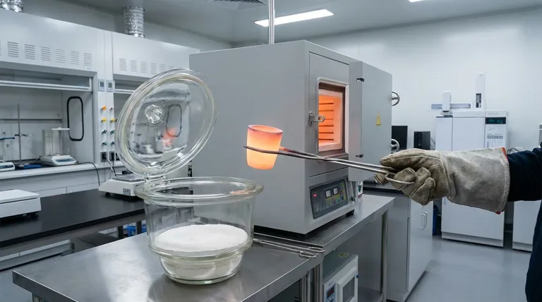 فور إخراجها من فرن التفريغ، يجب نقل البوتقة الساخنة إلى مجفف. هذا الوعاء المتخصص يحافظ على جو جاف، ويحمي البوتقة من امتصاص الرطوبة المحيطة.