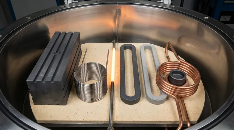 يتم اختيار عناصر التسخين الأكثر شيوعًا في أفران التفريغ بناءً على قدرتها على تحمل درجات الحرارة القصوى مع الحد الأدنى من إطلاق الغازات. تندرج هذه المواد في فئتين رئيسيتين: العناصر غير المعدنية مثل الجرافيت، والمعادن الحرارية مثل الموليبدينوم والتنغستن. تشمل الخيارات المتخصصة الأخرى المركبات السيراميكية مثل كربيد السيليكون (SiC) وثنائي سيليسيد الموليبدينوم (MoSi₂)، بالإضافة إلى أنظمة التسخين بالحث.