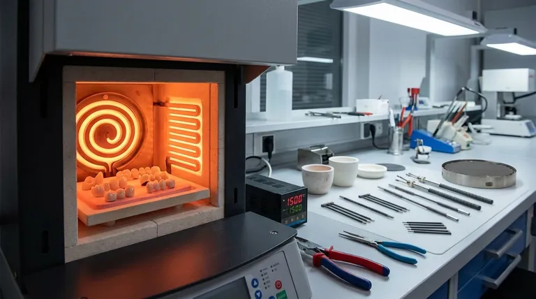 المزايا الأساسية لعناصر التسخين المصنوعة من كربيد السيليكون (SiC) في أفران الأسنان هي أداؤها المتفوق في درجات الحرارة العالية، واستقرارها الكيميائي الاستثنائي، ومتانتها على المدى الطويل. هذه الخصائص تجعلها المعيار الصناعي للعمليات المتطلبة مثل تلبيد الزركونيا عالية القوة، حيث يعد نقاء المواد والمعالجة الحرارية المتسقة أمرًا بالغ الأهمية لنجاح الترميم النهائي.