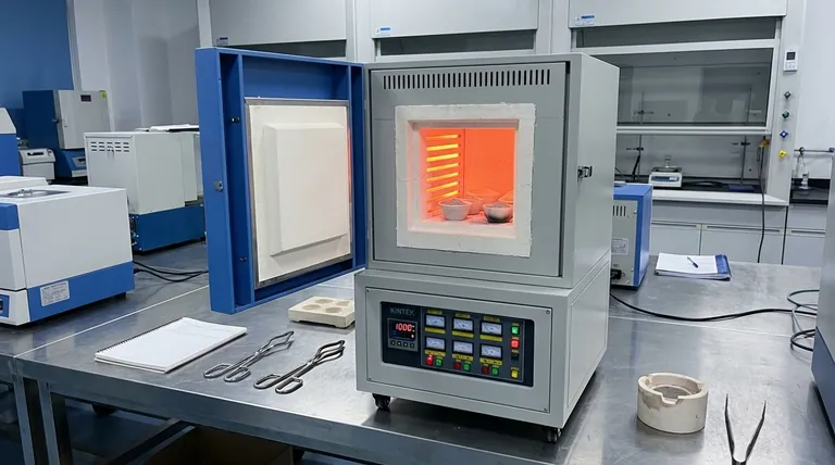 - ما هي الوظيفة الأساسية لفرن الكتمة في تحضير صفائح نانوية من كربيد نيتريد الكربون الرسومي (g-C3N4)؟ المعالجة الحرارية للمواد الرئيسية