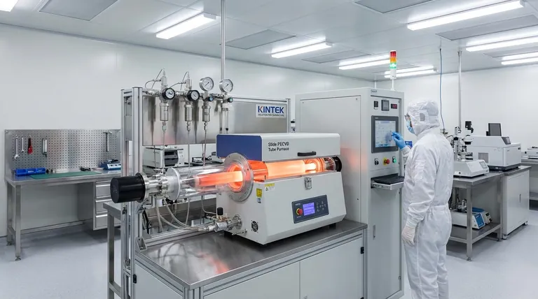 عزز تصنيع أشباه الموصلات لديك باستخدام أنظمة PECVD المتقدمة من KINTEK! بالاستفادة من البحث والتطوير الاستثنائي والتصنيع الداخلي، نوفر لمختلف المختبرات حلول أفران درجات الحرارة العالية، بما في ذلك أنظمة CVD/PECVD، مدعومة بتخصيص عميق قوي لتلبية احتياجاتك التجريبية الفريدة بدقة. اتصل بنا اليوم لمناقشة كيف يمكن لحلول PECVD المصممة خصيصًا أن تحسن أداء وموثوقية جهازك!