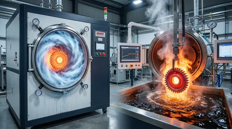 في الفرن المفرغ، يتم تحقيق التبريد بشكل أساسي من خلال التخميد بالغاز عالي الضغط أو التخميد بالزيت. تم تصميم هذه الطرق لخفض درجة حرارة الجزء المسخن بسرعة لتثبيت خصائص معدنية محددة. يعتمد الاختيار بينهما كليًا على المادة التي يتم معالجتها والخصائص النهائية المطلوبة، مثل الصلابة والاستقرار الأبعاد.