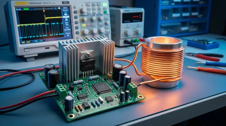 لا يمكن لسخان الحث أن يعمل على التيار المستمر الثابت الذي يوفره مصدر الطاقة. فهو يتطلب تيارًا سريع التغير لإحداث تيارات دوامية في قطعة العمل. ودائرة القيادة هي المسؤولة عن هذا التحويل الحاسم.