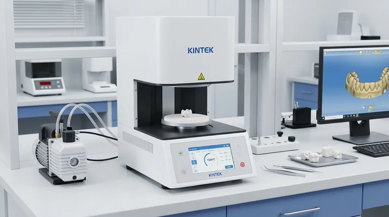 باستخدام البحث والتطوير الاستثنائي والتصنيع الداخلي، توفر KINTEK لمختبرات الأسنان حلول أفران متقدمة عالية الحرارة. يكتمل خط إنتاجنا، بما في ذلك أفران Muffle، Tube، Rotary، أفران التفريغ والجو، وأنظمة CVD/PECVD، بقدرات تخصيص عميقة قوية لتلبية احتياجاتك التجريبية والإنتاجية الفريدة بدقة. سواء كنت تركز على الدورات السريعة بجانب الكرسي أو الجسور المعقدة متعددة الوحدات، تضمن أفراننا أداءً موثوقًا ونتائج مثالية.