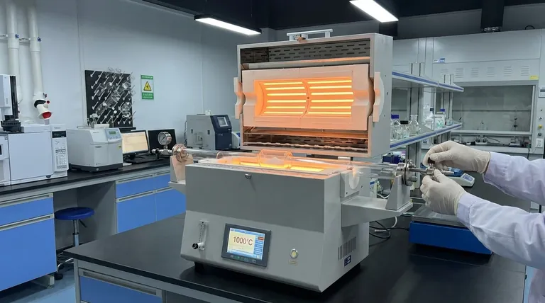 - ما هو الدور الذي تلعبه فرن الأنبوب المخبري أثناء عملية الكربنة لـ LCNSs؟ تحقيق كفاءة 83.8%