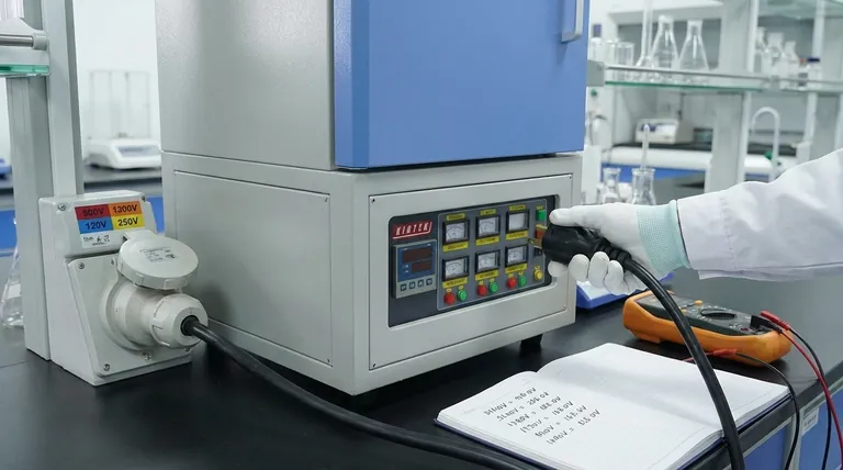 بينما يُعد مطابقة الجهد شرطًا لا غنى عنه، فإن القرار المهم حقًا يكمن في عمق أبعد. يضمن الجهد الصحيح ببساطة تشغيل الفرن؛ أما الفرن الصحيح فهو الذي يتوافق نطاق درجة حرارته ومادة غرفته وتجانسه بدقة مع تطبيقك العلمي أو الصناعي المحدد.